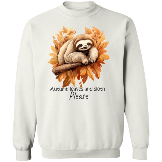 Autumn Leaves and Sloth Please Crewneck Pullover Sweatshirt