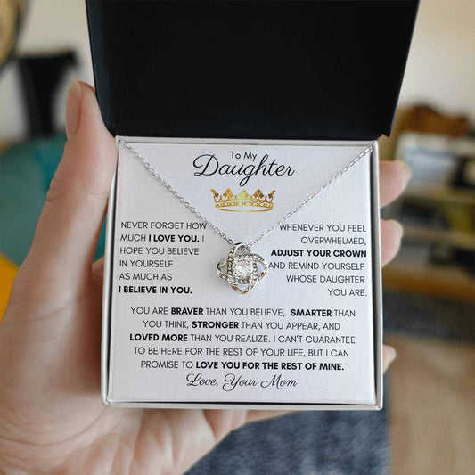 Daughter - Adjust Your Crown - Love, Mom - Love Knot Necklace