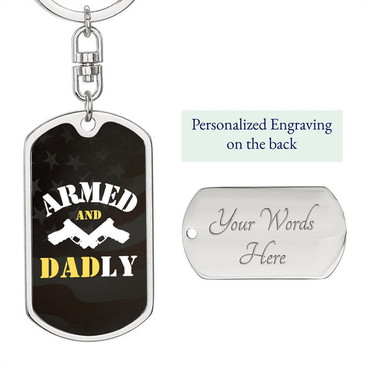 Armed and Dadly Dog Tag Keychain Black