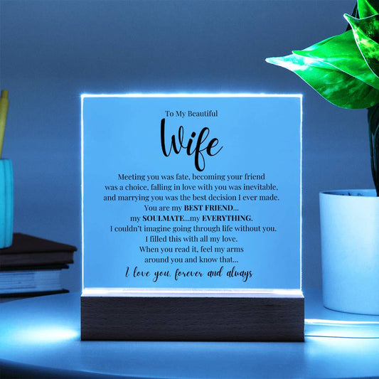 To My Beautiful Wife "Meeting You Was Fate" LED Acrylic Plaque