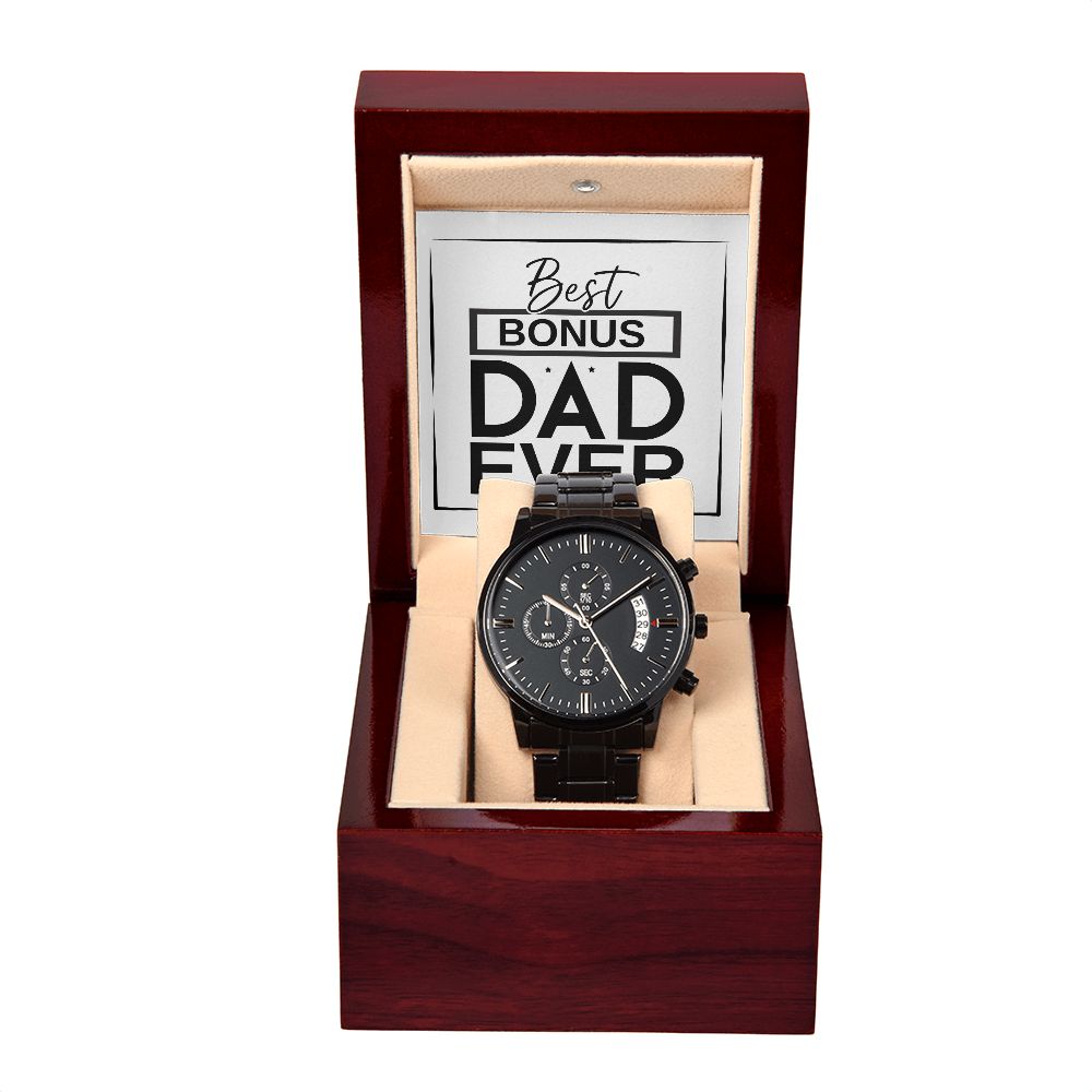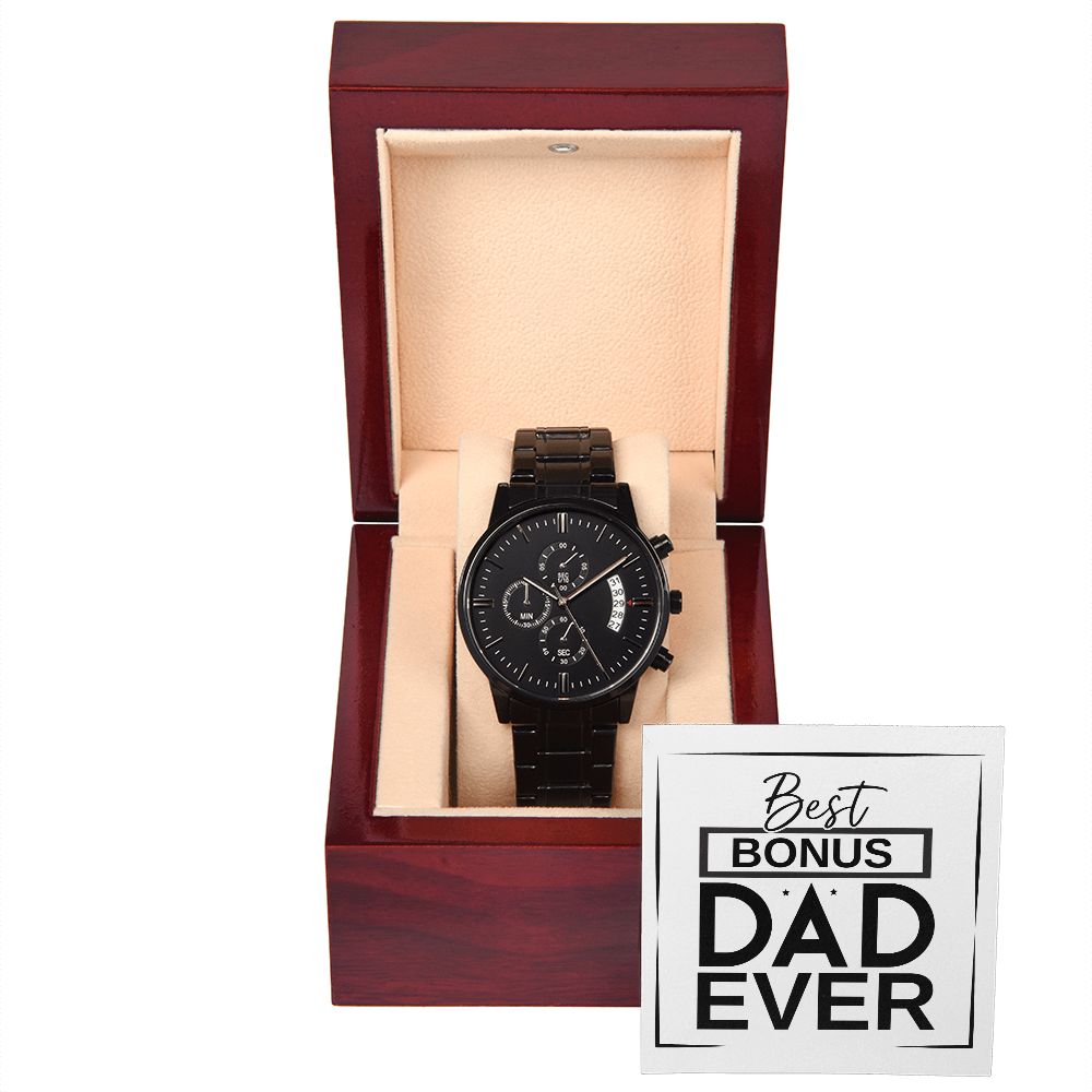 A handsome gift that can withstand constant use, this Black Chronograph Watch is perfect for all the special men in your life. A thoughtful present to your groomsmen, an anniversary memento, or a long-lasting keepsake for Father’s Day - it's a versatile piece sure to warm hearts and create smiles. Featuring a three-dial face, calendar function, and luxury pointer in a water-resistant and scratch-proof vessel.