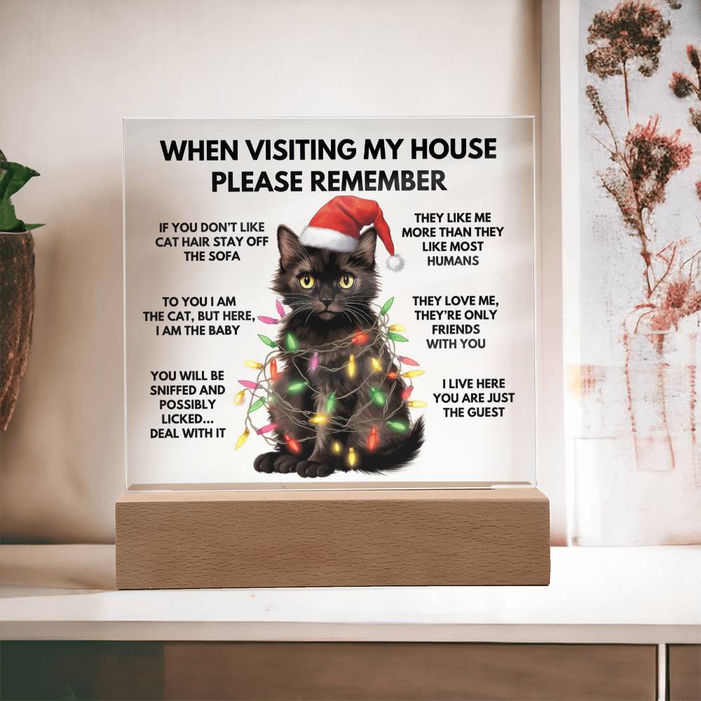 Whether you're looking to add a touch of humor to your home or searching for the ideal gift for a fellow cat enthusiast, our "When Visiting My House Please Remember" acrylic plaque is the cat's meow!