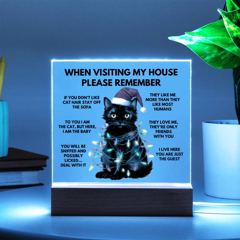 Introducing our whimsical and purr-fectly charming "When Visiting My House Please Remember" acrylic plaque!
