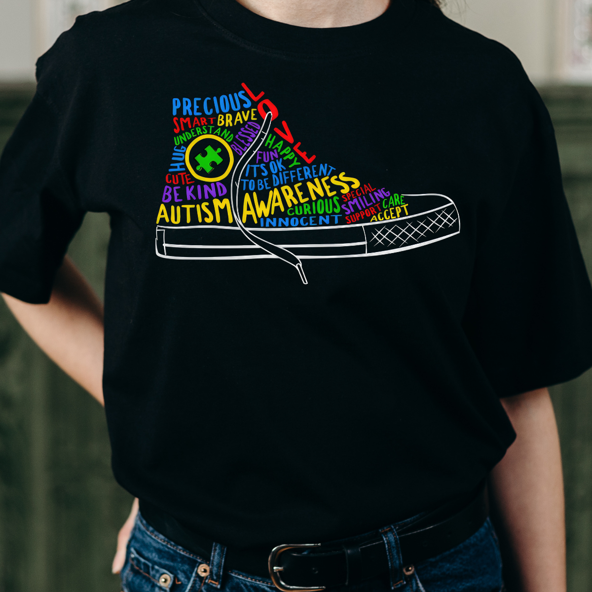 Raise understanding and support with our Autism Awareness T-Shirt, featuring a symbolic sneaker adorned with empowering autistic phrases. Wear it proudly to advocate for acceptance and inclusivity. Let your clothing speak volumes about your commitment to making a difference.