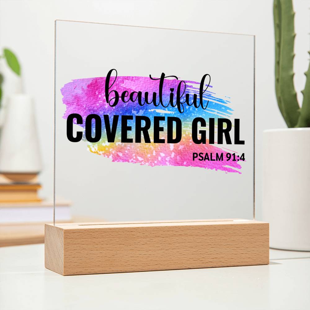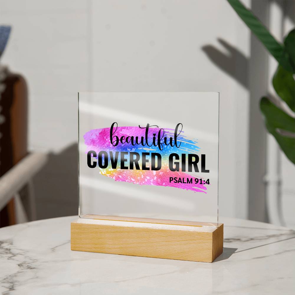 Beautiful Covered Girl - Psalm 91:4 Acrylic Plaque