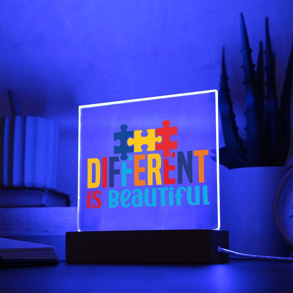 Different Is Beautiful LED Acrylic Plaque - Autism Awareness