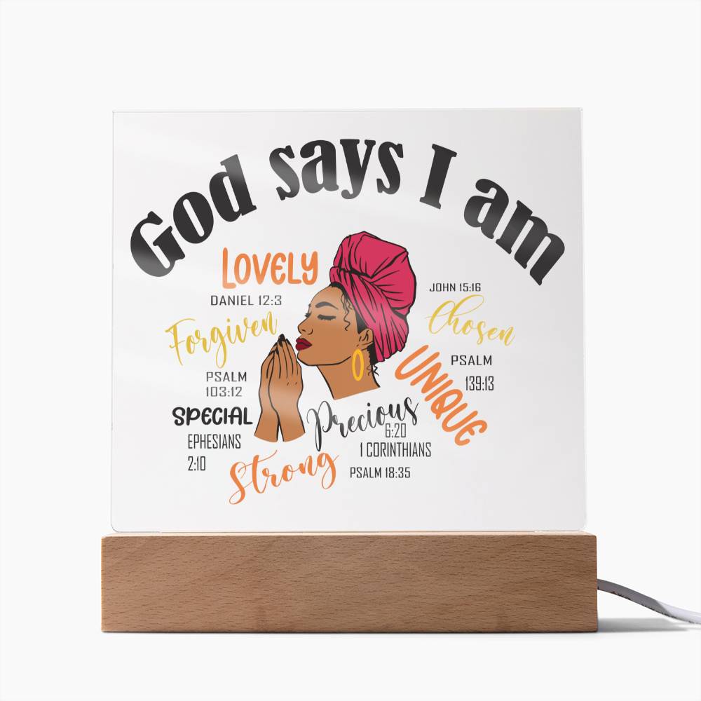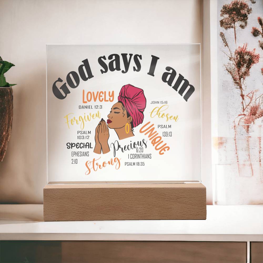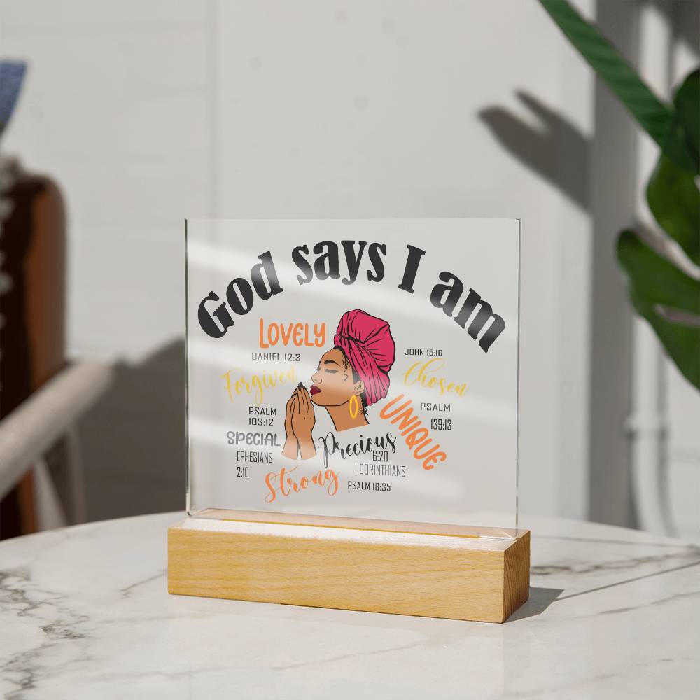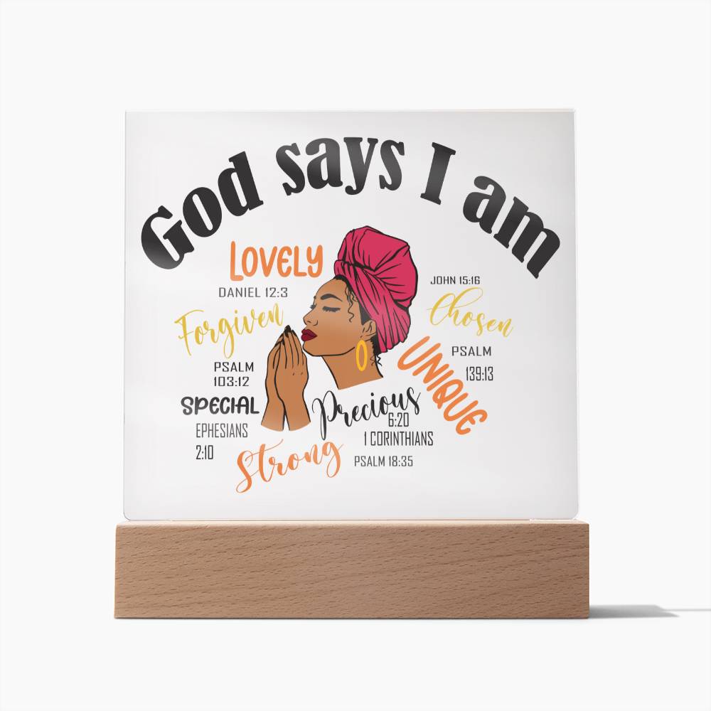 God Says I Am Affirmation Acrylic Plaque