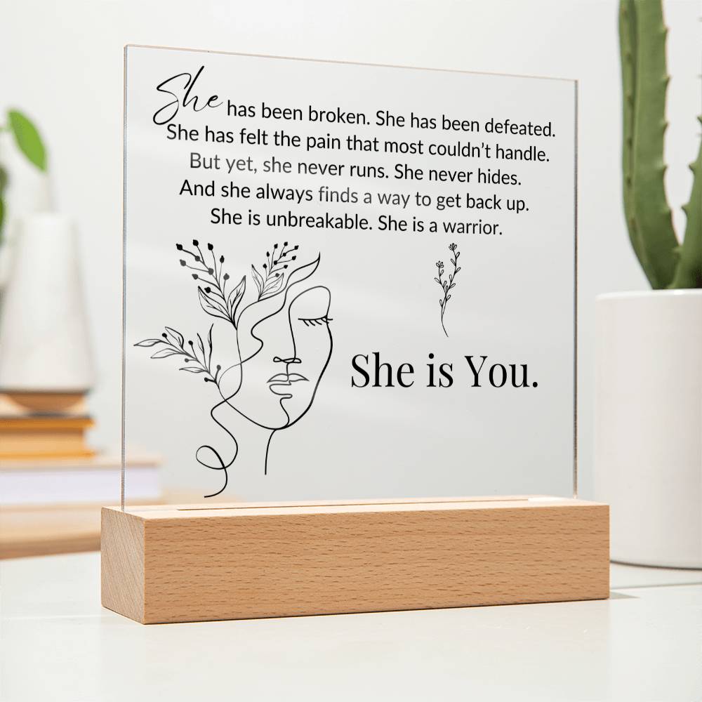 Our exquisite Warrior - She Is You LED Acrylic Plaque is more than just a heartfelt message – it's a guiding light through the darkest of times.